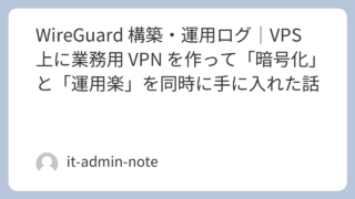 前回の記事では、なぜ WireGuard を選んだか という判断の背景を書きました。今回はその続きとして、実際に VPS 上に WireGuard を構築して、業務で運用してみた記録 をまとめます。Web 公開用途ではなく、業務専用 VPN...