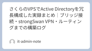 サーバ / VPS 構築・運用 さくらのVPSでActive Directoryを冗長構成した実録まとめ|ブリッジ接続・strongSwan VPN・ルーティングまでの構築ログ