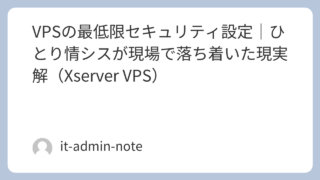 このブログの最初の方で書いていた、業務サーバー構築ログの続きです。前回の、Xserver VPS 初期構築ログ|Ubuntu 24.04 LTSで最初にやった設定 では、一般ユーザー作成SSH の基本設定root ログイン制限最低限のセキュ...