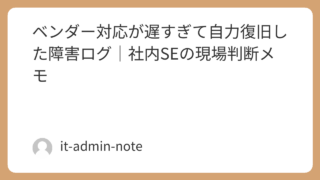 トラブル対応・実録 ベンダー対応が遅すぎて自力復旧した障害ログ|社内SEの現場判断メモ