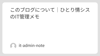 このブログについてはじめまして。このブログは、中小企業で社内SEをしている人間が、日々の 構築・運用・トラブル対応の記録を淡々と残していく場所 です。いわゆる「ひとり情シス」っぽい立ち位置ですが、実際には完全に1人というわけではなく、少人数...