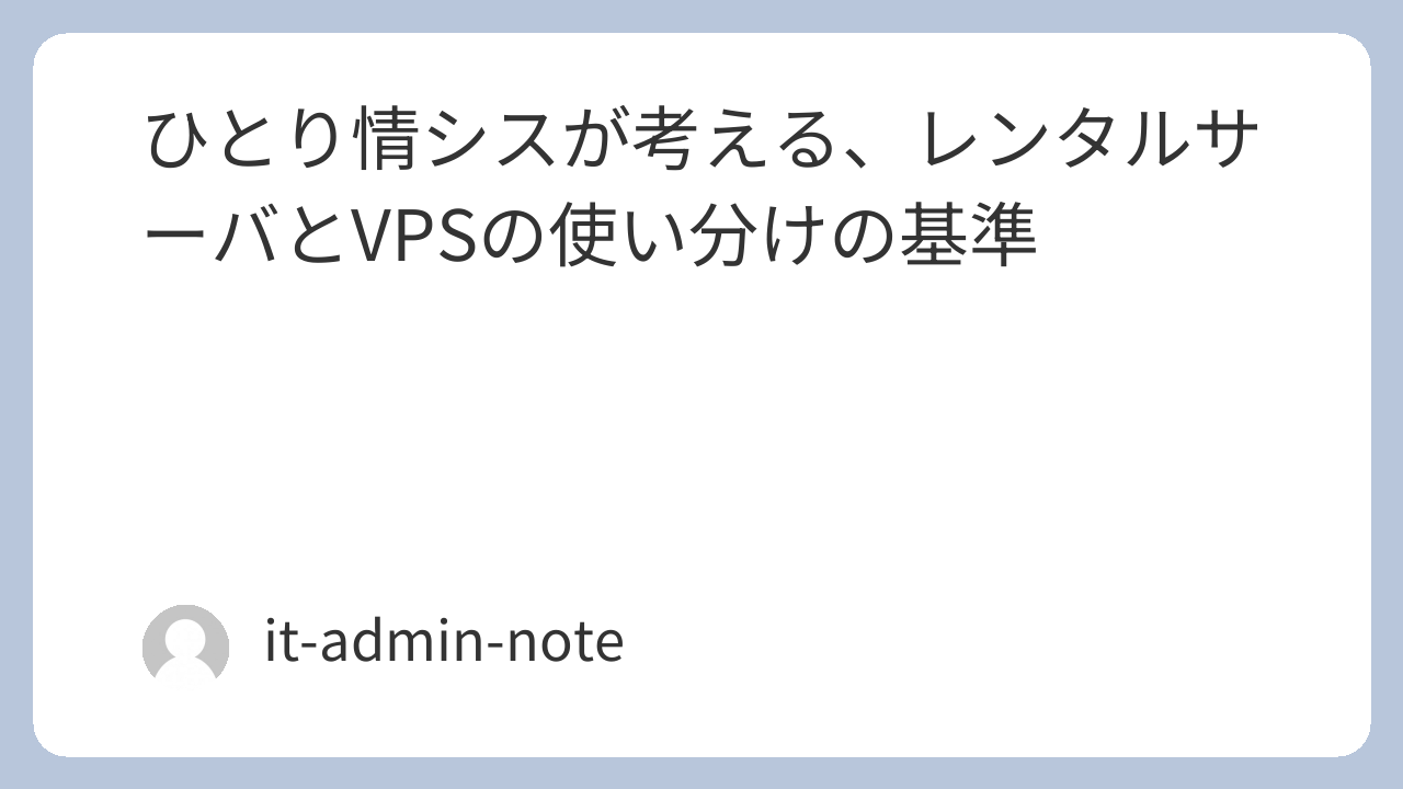 最近の結論:できるだけレンタル、必要ならVPS