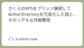 前回の記事で、さくらのVPSをブリッジ接続してActive Directoryを冗長化した話と、そのリアルな月額費用 について書きました。