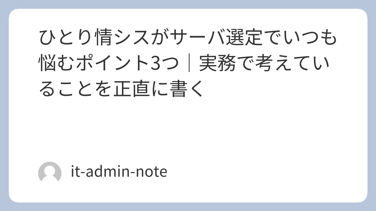そんな立場で、実務としてサーバを選ぶときに、自分がいつも意識しているポイントを3つまとめてみます。