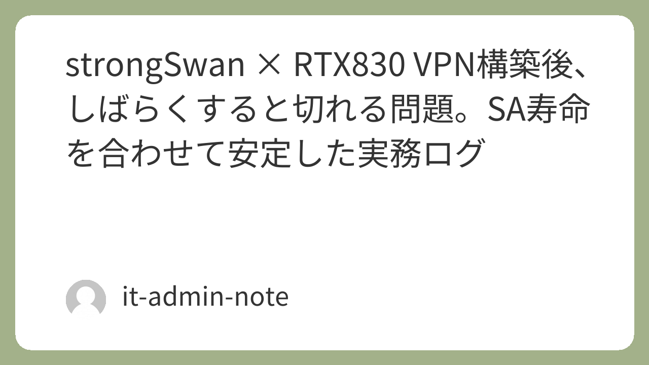 strongSwan × RTX830 VPN構築後、しばらくすると切れる問題。SA寿命を合わせて安定した実務ログ