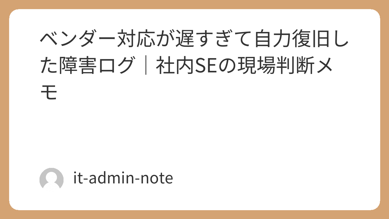 社内SEの役割って、「障害を完璧に直すこと」より、「業務を止めないこと」だと思っている。